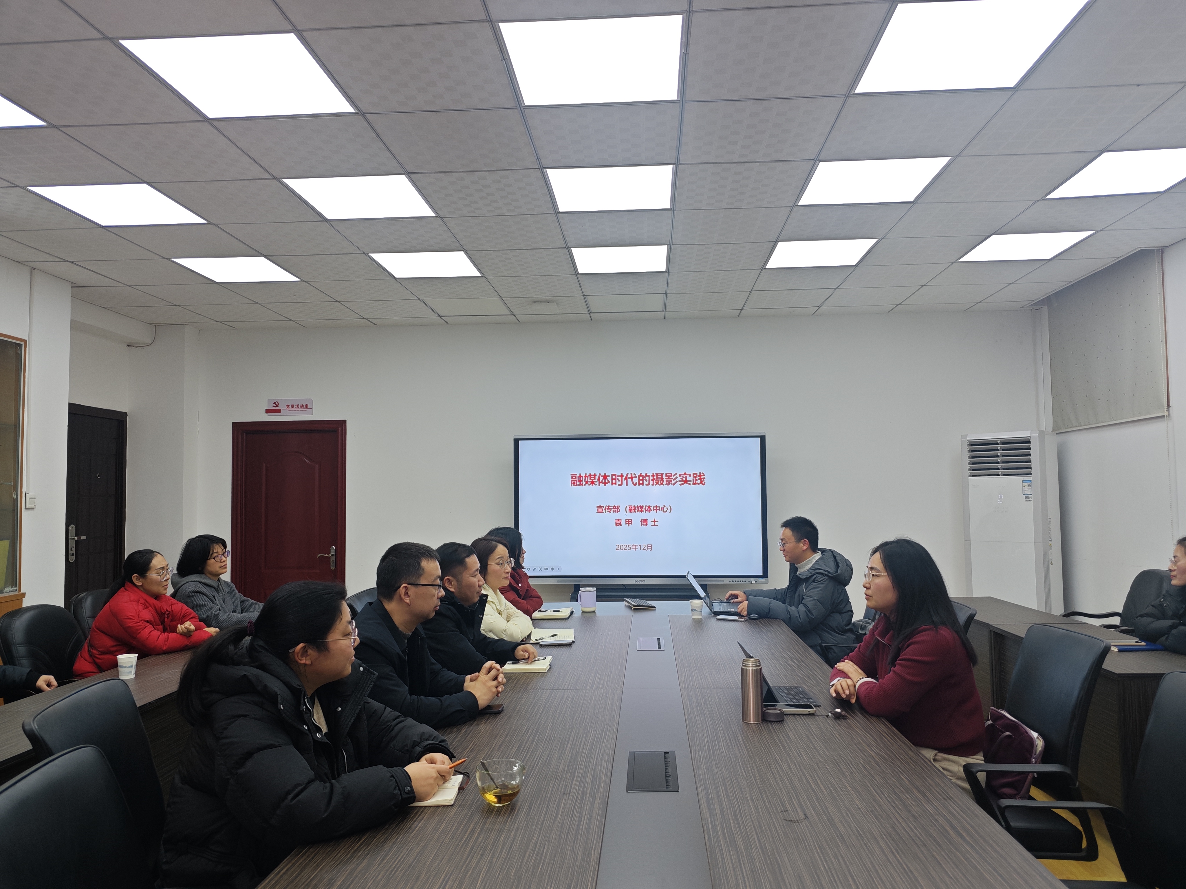 为适配融媒体时代发展趋势,提升党员干部的摄影实践能力,2025年12月26日,机关第十六党支部成功举办第十四期“金扁担・精管家・资实讲堂”专家讲座。本次讲座以“融媒体时代的摄影实践”为主题,邀请宣传部(融媒体中心)袁甲博士担任主讲嘉宾,党支部书记刘娜主持讲座,资产与实验室管理处全体党员干部积极参会学习。